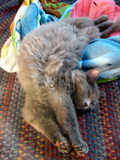 I love this picture! Yes, I take more pictures of Zach than TJ. No, I'm not playing favorites. But after 11 years of having an unphotogenic black cat, gray is a welcome change....